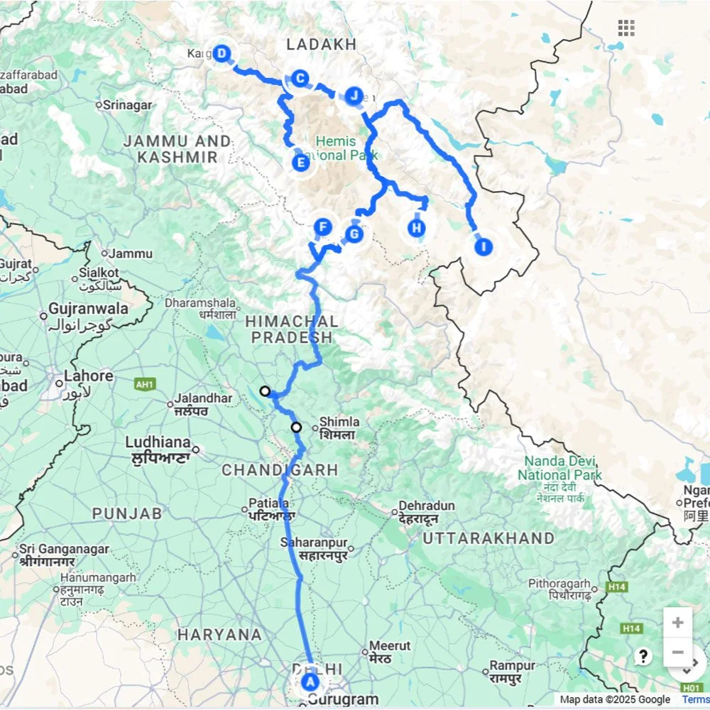 Delhi → Leh → Zanskar Valley → Padum → Sarchu → Tsomoriri → Hanle → Umling La → Leh